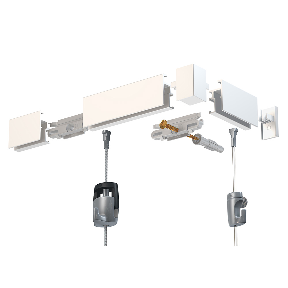 Transform the way you display art and decor with the Newly R20 All-round Rail, a revolutionary picture hanging system designed to elevate your space without the worry of wall damage. This innovative solution requires just a single installation, allowing you to effortlessly switch your artwork whenever inspiration strikes. Thanks to the Click & Connect system, installing the rail system is a breeze, saving you time and effort. The R20 All-round Rail can be seamlessly mounted flush against your ceiling and can be re-painted to blend in harmoniously with your walls or ceilings, making it virtually undetectable.