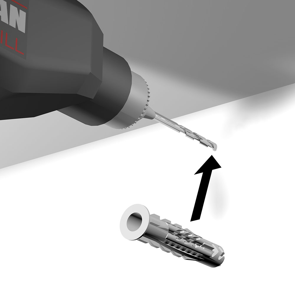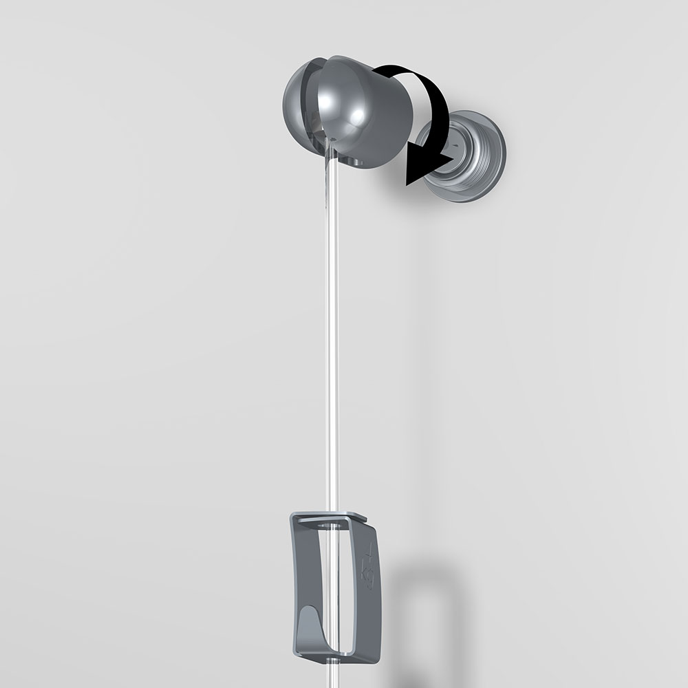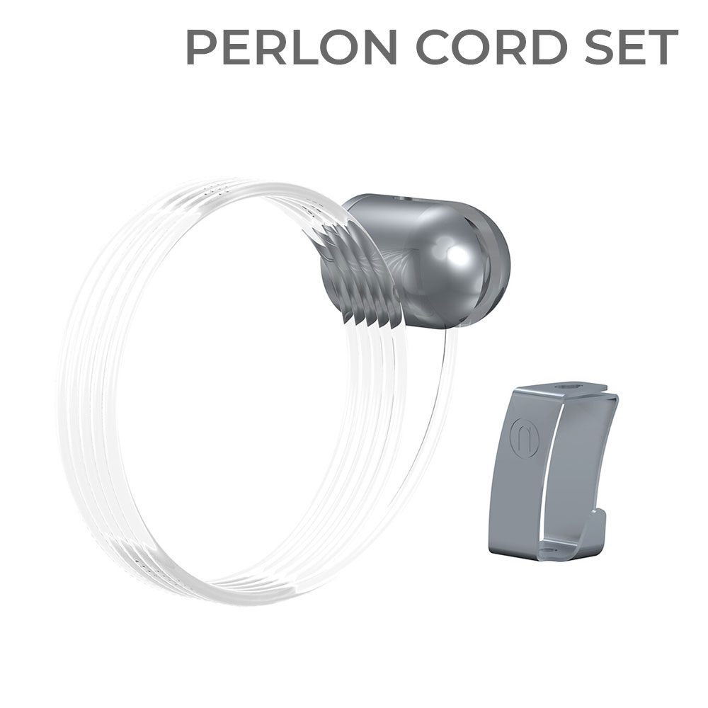 For a max. load capacity of 4 kg / 8 lb, you’ll receive a 2 mm Perlon Hanging Cord, an H10 Hook, and a metal wall hanger that consists of two parts: a mounting foot and a closing cap, along with a screw and wall plug.