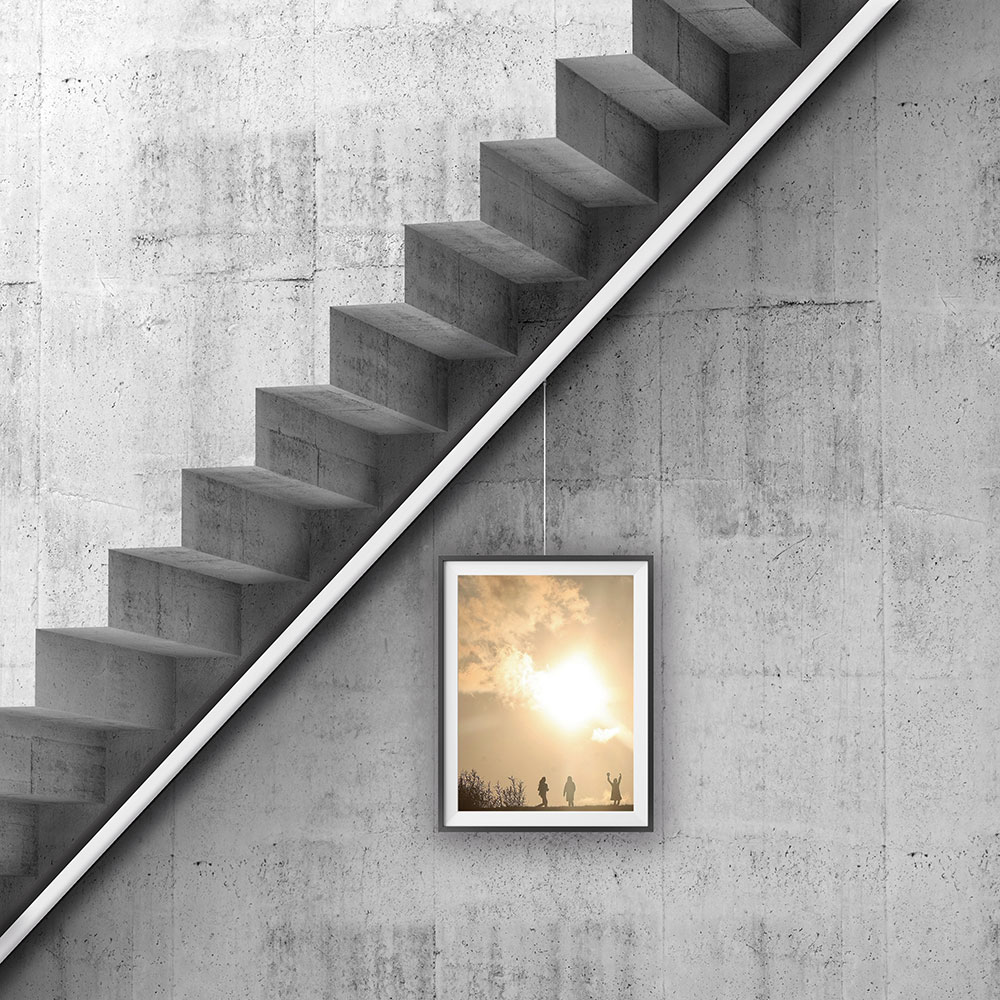 The Newly Stopper Set is your perfect companion for showcasing artwork on sloped surfaces. This innovative solution seamlessly integrates with all Newly wall-mounted hanging systems, ensuring your pictures stay securely in place. The adjustable stopper can be easily positioned anywhere along the rail, preventing the hanging cord from slipping down, making it ideal for steep angles found in attics or staircases.